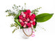 Go to the shopA diverse and colorful bouquet that brings together the purity of mini rose white and white fuchsia with the joyful vibrancy of orange and yellow roses, all harmonized by eucalyptus.